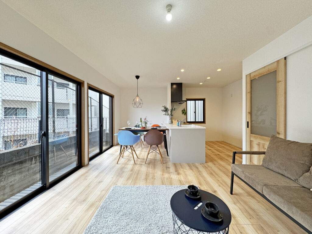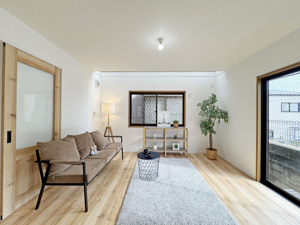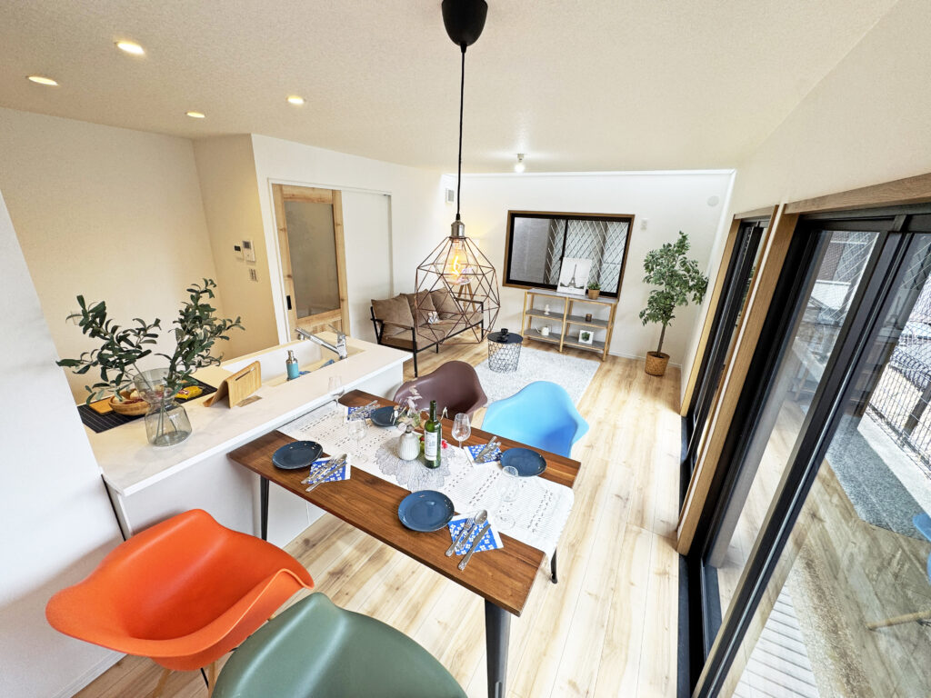 LDKは南側に大きな開口、さらに東側壁一面にはトップライトで自然光を取り込みやすい空間です!